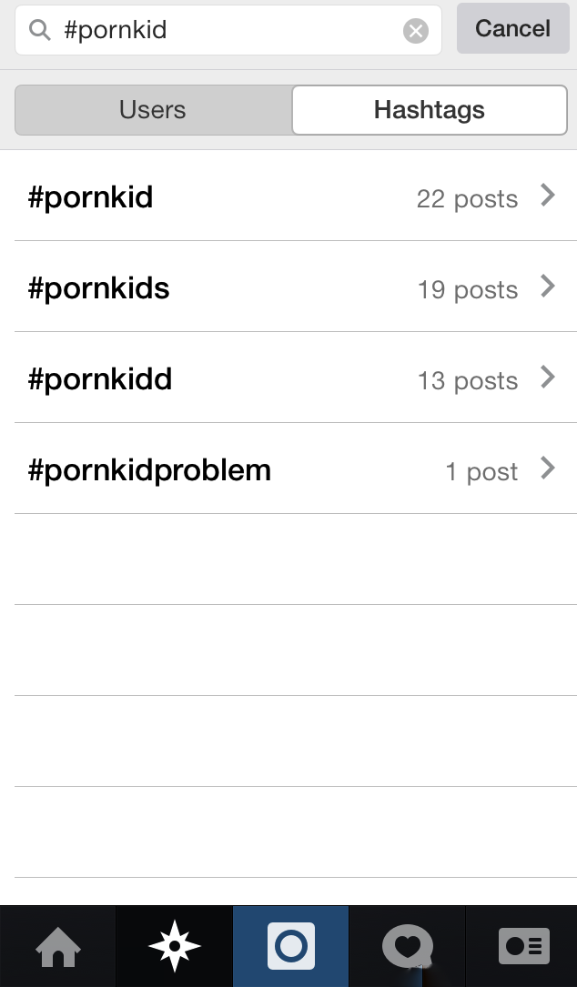 But, often, a longer version or even a combination of two banned tags work, such as #faketits, #gunsforsale, #sexytimes , #fuckfriday, #mybitches, #underboob #pornkid, #pornkids (these last two show naked underaged kids), #sexylingerie, #sexynudes. The ones cited here can show up to twelve thousand of posts.
